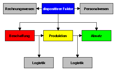 Im modernen Betrieb ist der dispositive Faktor nicht mehr ausgegliedert sondern als Management in der Mitte des Betriebes. Das Management ist die erste Gruppe unter Gleichen. Sie trägt zuerst die Verantwortung ist ist somit auch erster Punkt bei Veränderungen. Um das Management herum befinden sich Spezialisten, die jeder für sich auf ihrem Spezialgebiet mehr können, als das Management.