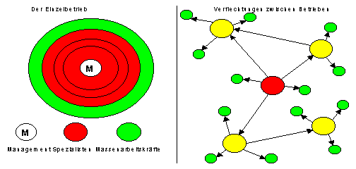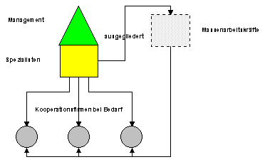 Unternehmen haben zum Großteil ihre Massenarbeitskräfte ausgegliedert und stellen dafür je nach Bedarf andere Firmen an, die jederzeit wieder abgestoßen werden können è es entstehen Rumpfbetriebe.