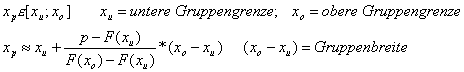 p-Quantil= F(xp)˜p, der Wert, bei dem die kumulierte Häufigkeit den Wert p erreicht.