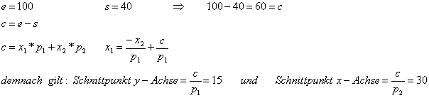 Ab einer Menge 12,5 steigt der Konsum x1 nicht weiter an, d.h. das Gut ist rationiert auf 12,5.