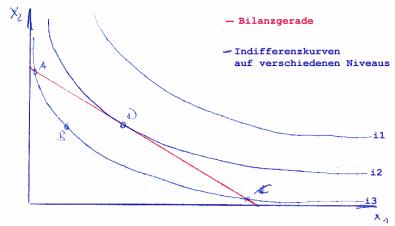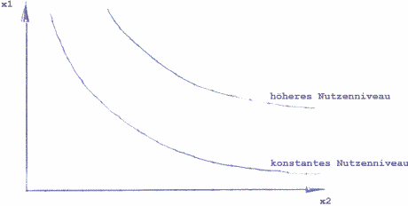 Es ergibt sich beim Konstantsetzen von U eine Indifferenzkurve = eine Linie gleichen Nutzenniveaus.