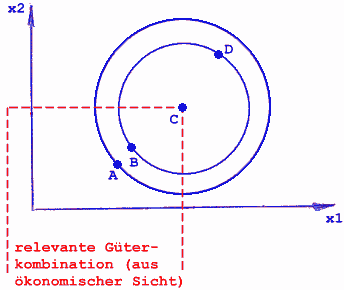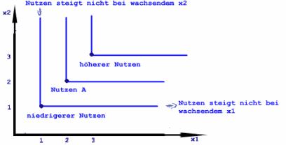 Der Nutzen ist abhängig vom Verbrauch der Güter x1 und x2.