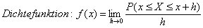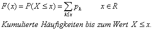 Durch die unendlich große Zahl der Wert lässt sich die Verteilungsfunktion nicht als Summe der Werte darstellen, sondern nur als Fläche unter der Dichtefunktion