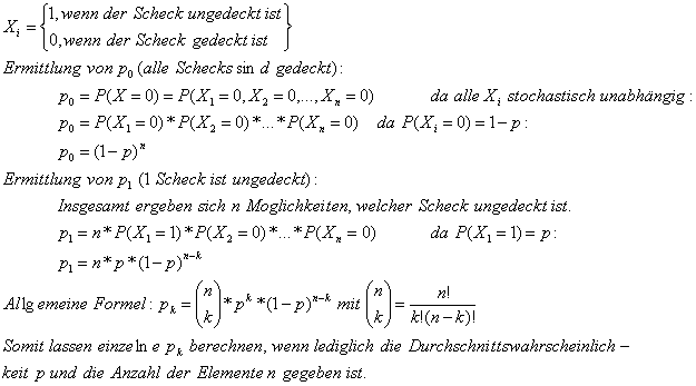 Gesucht ist die Wahrscheinlichkeitsfunktion pk=P(X=k) mit k=0,1,2,...,n.