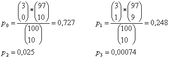 Hypergeometrische Verteilung: jedes Element wird nach der Prüfung nicht zurückgelegt