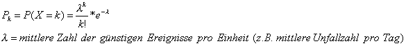 k ist mittlere Anzahl der Ereignisse pro Einheit (z.B. Anrufe pro Minute