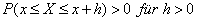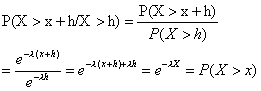 P(X>x+h/X>h) (Interpretation: z.B. Wahrscheinlichkeit, dass in den nächsten x Minuten kein Anruf kommt, unter der Bedingung, dass bereits h Minuten vergangen sind.