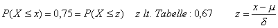 Berechnung des 25%-Quartils und des 75%-Quartils: