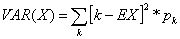 Varianz: VAR(X)=E(X-EX)2, mit EX=konst.