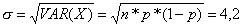 - Varianz: (Formel lt. Tafelwerk, für Binomialverteilung)