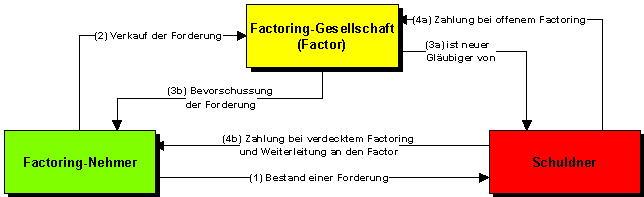 Factoring ist der laufende Ankauf und die Verwaltung von kurzfristigen Forderungen aus Lieferungen und Dienstleistungen. Es umfasst die Übernahme des Ausfallrisikos und die Bevorschussung der Forderungen durch eine Factoring-Gesellschaft. |