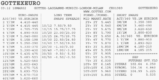 èErste Spalte: Swapsätze fest gegen 3-Monats-Euribor und 6-Monats-Euribor è3. Spalte: Forward-Satze è4. Spalte: kurzfr. Swapsätze, z.B. 3-Monats-Euribor gegen 1-Monats-Euribor |